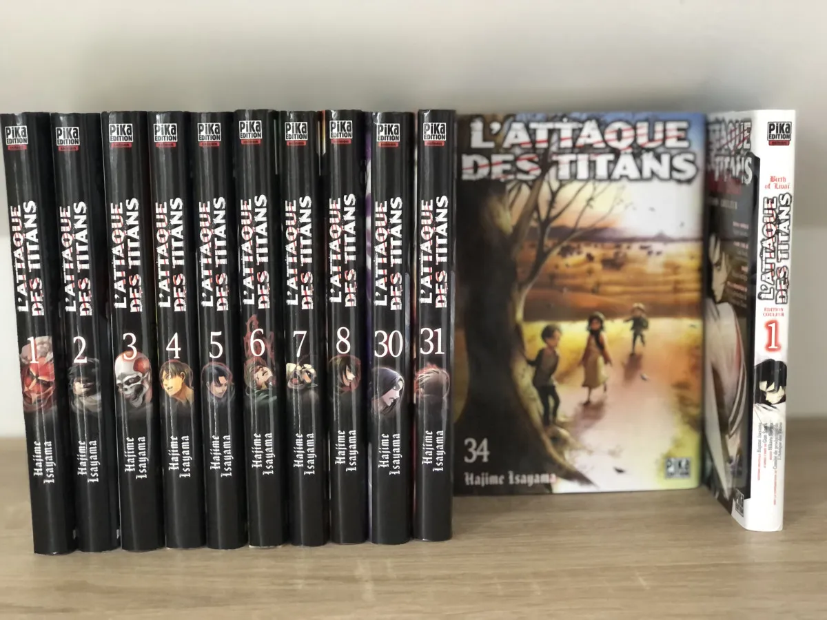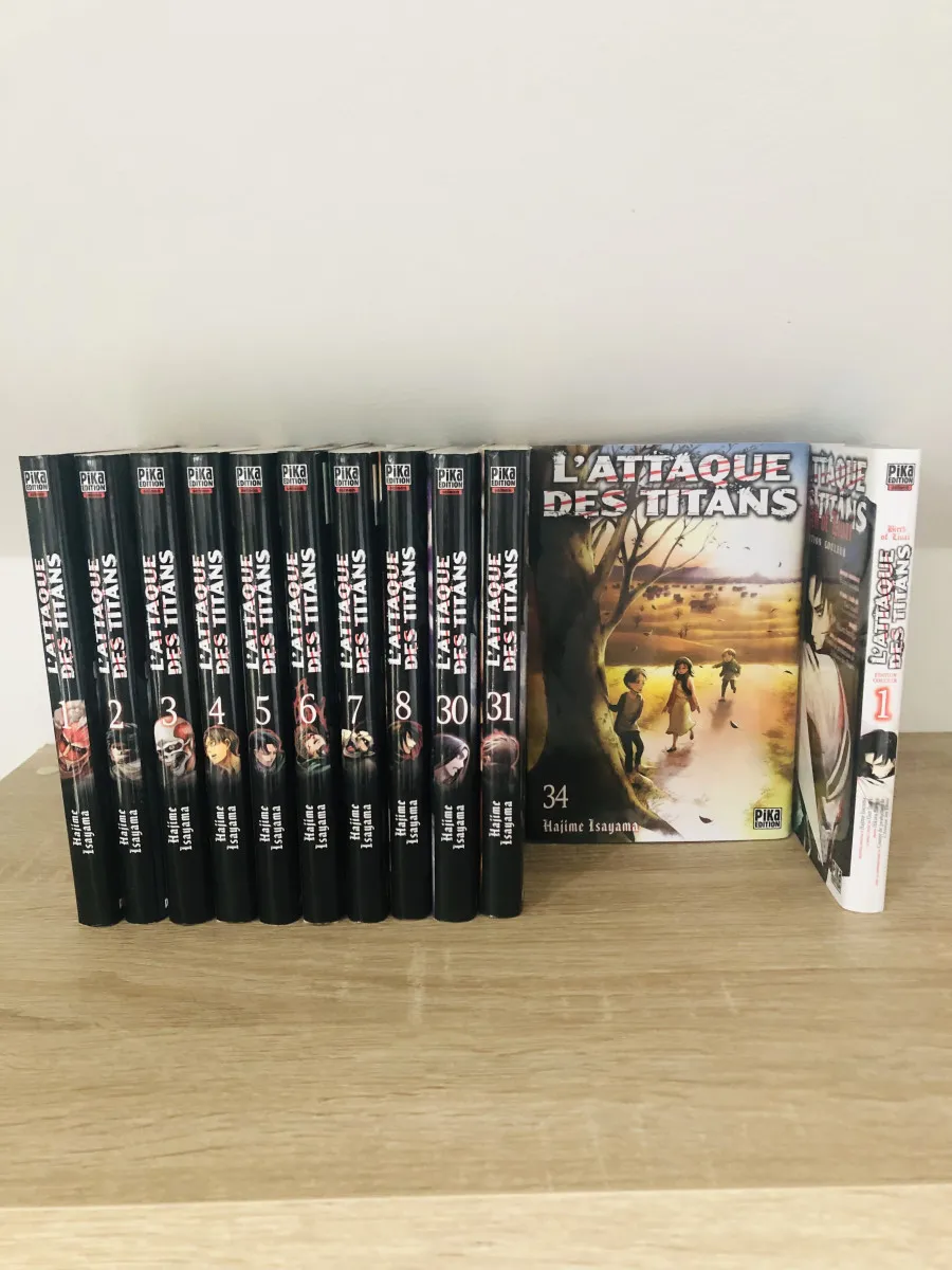 Manga de la série « attaque des titans », Tome 1 à 8 et 30,31,34+tome birth of livai édition couleur. Stand acrylique en plus