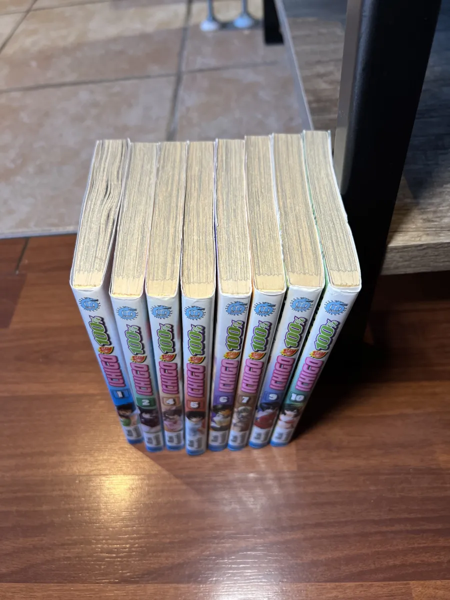 Lot de 8 manga 100% Ichigo tomes 2 a 10 (sans le 3 et 8). Très bon état. Pages légèrement jaunies.